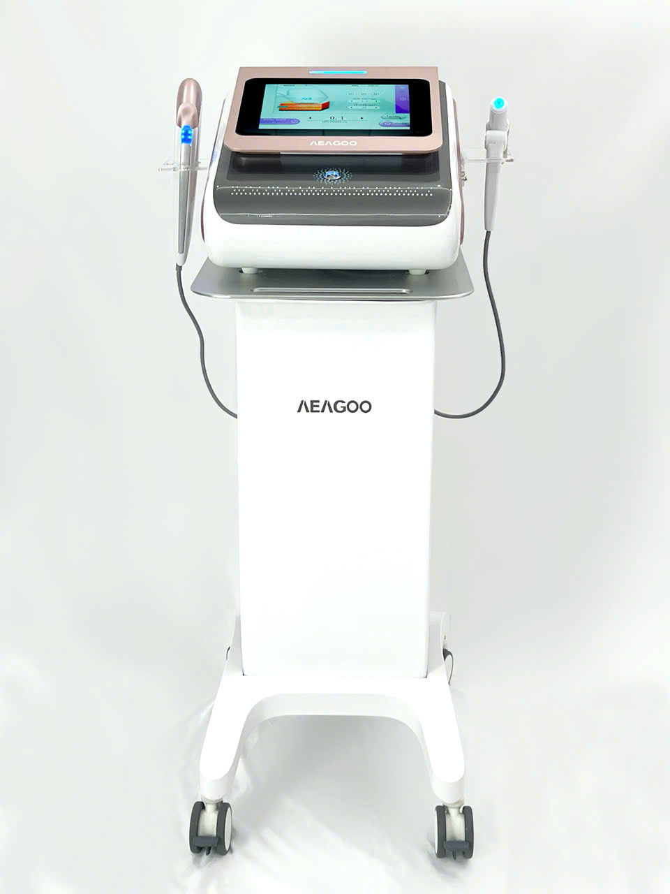 Thiết bị có hai tay cầm: Cutterhead và Cannonhead, phù hợp cho từng vùng da khác nhau như quanh mắt, mặt, cổ và vùng nọng cằm.